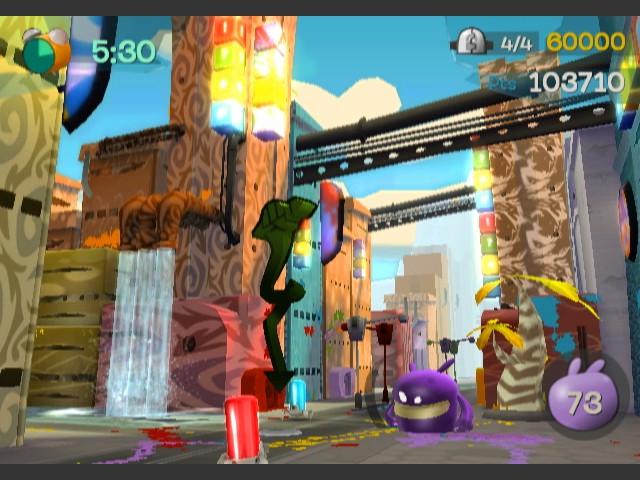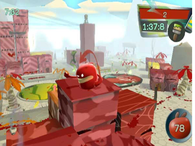 De Blob – это уникальная физика, перемещения по земле и по воздуху, длиннющие прыжки, невероятная динамика и зрелищность вкупе с гениально подобранным, зажигательным музыкальным сопровождением. Используются все возможности революционного управления Wii – оно идеально подходит для столь необычной игры: вы качаете пультом Wii, и отважный де Блоб прыгает в такт! Если вы хотите необычных, ярких и увлекательных приключений, то выбирайте De Blob!